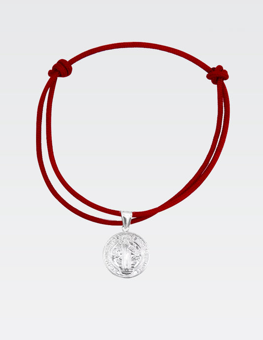 Pulsera de Hilo Rojo con Dije de medalla de San Benito | Plata Ley MEX .925