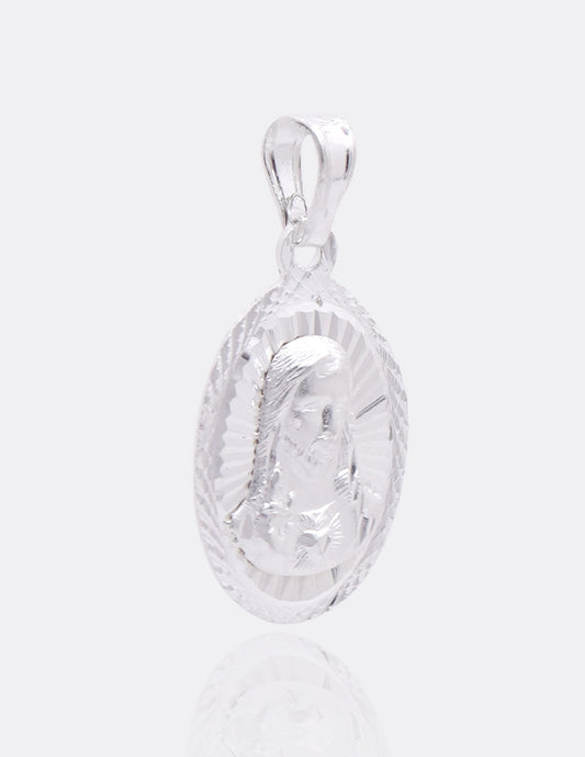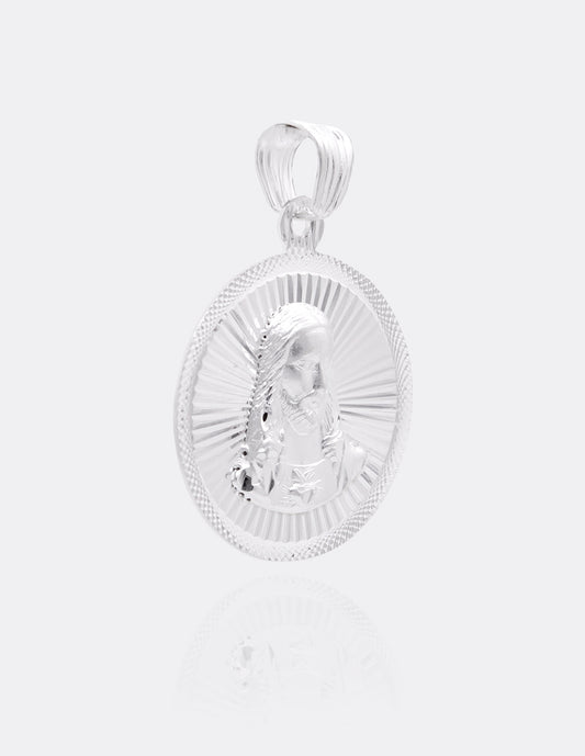 Dije de Plata .925 | Divino Rostro con la Virgen de Guadalupe | 2.8 CM de Altura 1.5 CM Ancho