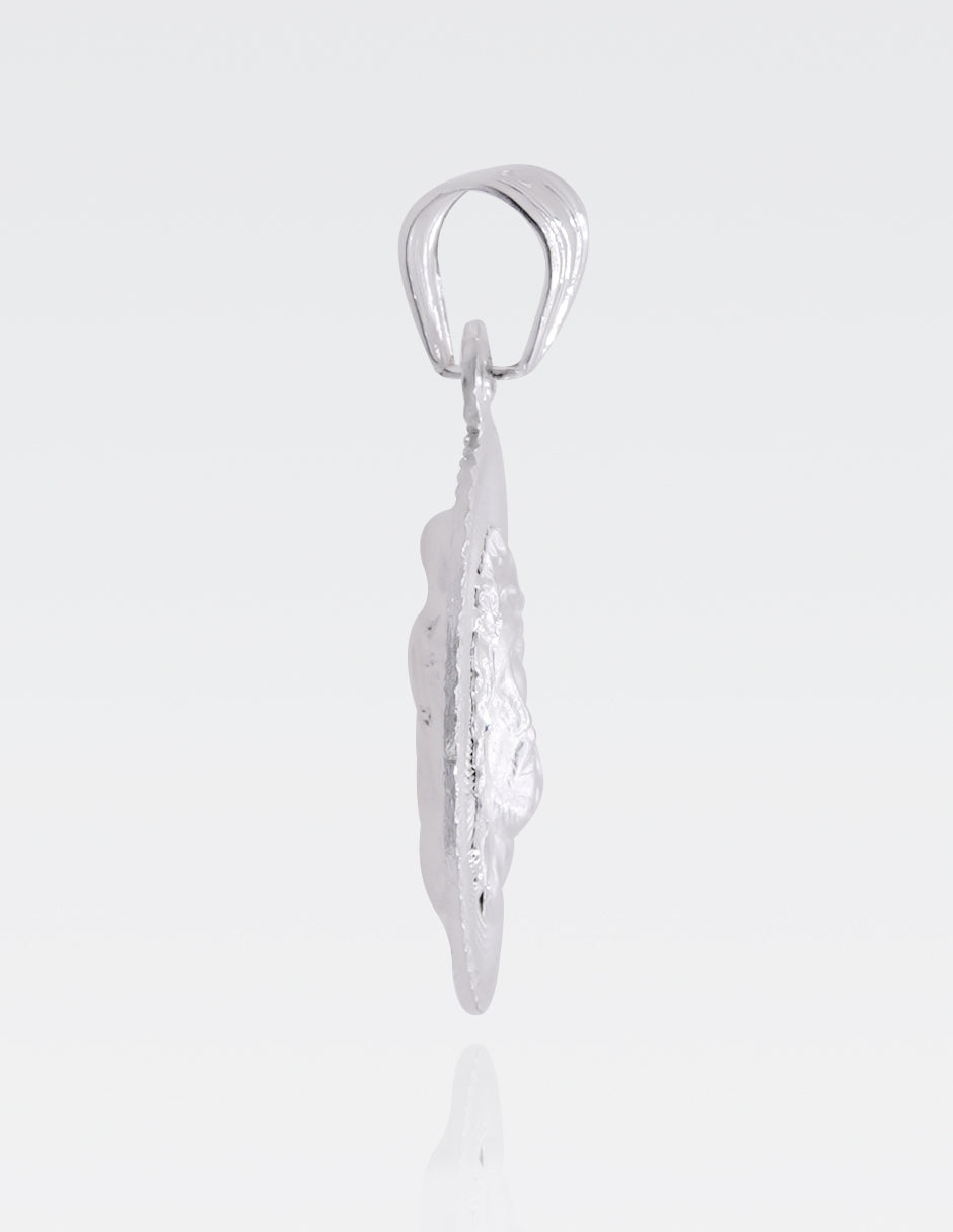 Diseño devocional: Dije con imagen de Cristo en relieve, rodeado de un marco finamente trabajado que realza su expresión y detalle espiritual.